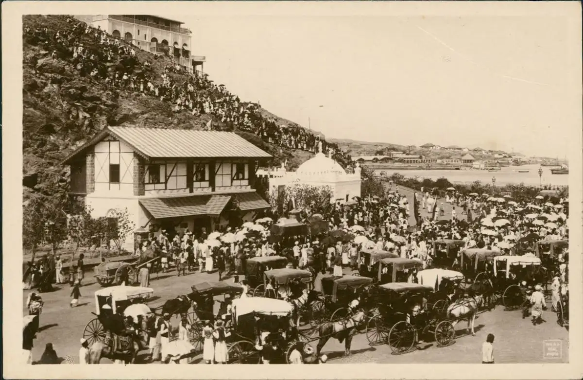 Postcard Aden Jemen عدن Menschenauflauf, Kutschen im Hafen 1926