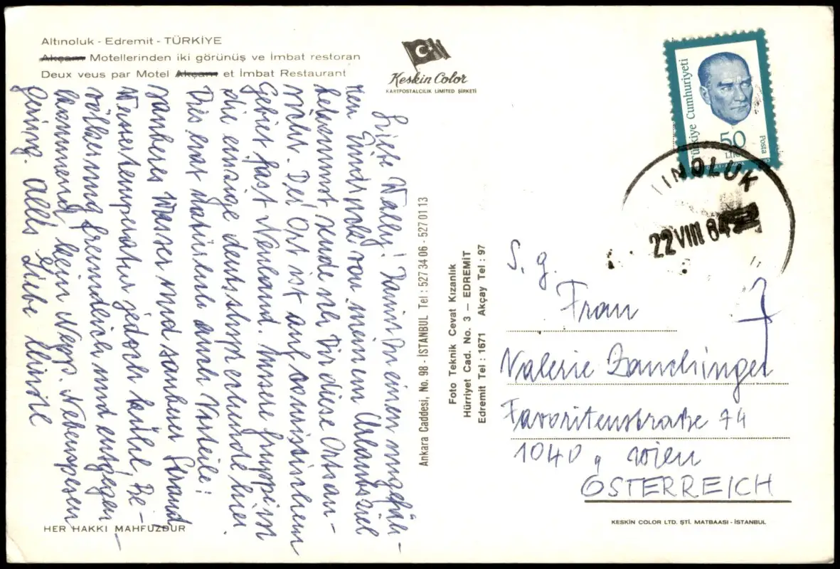 Postcard Altinoluk STadt, Strand - Türkei 1984 gel. mit Stempel