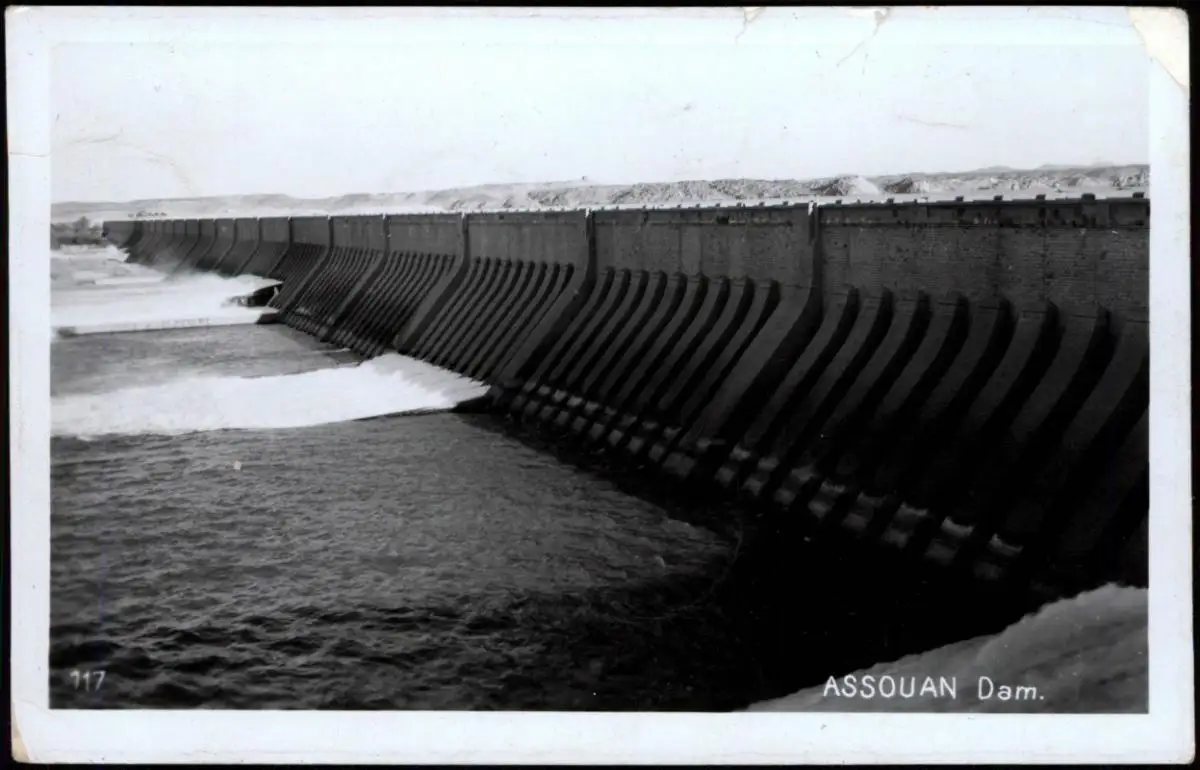 Postcard Assuan Eswan أسوان ASSOUAN Dam, Sperrwerk 1957