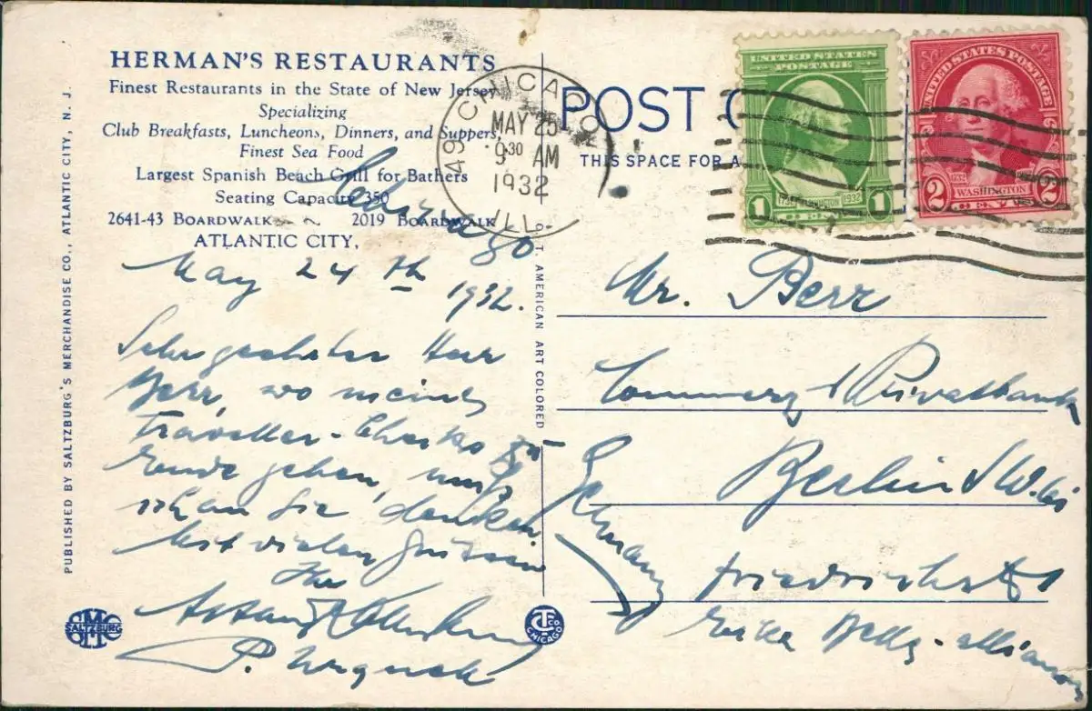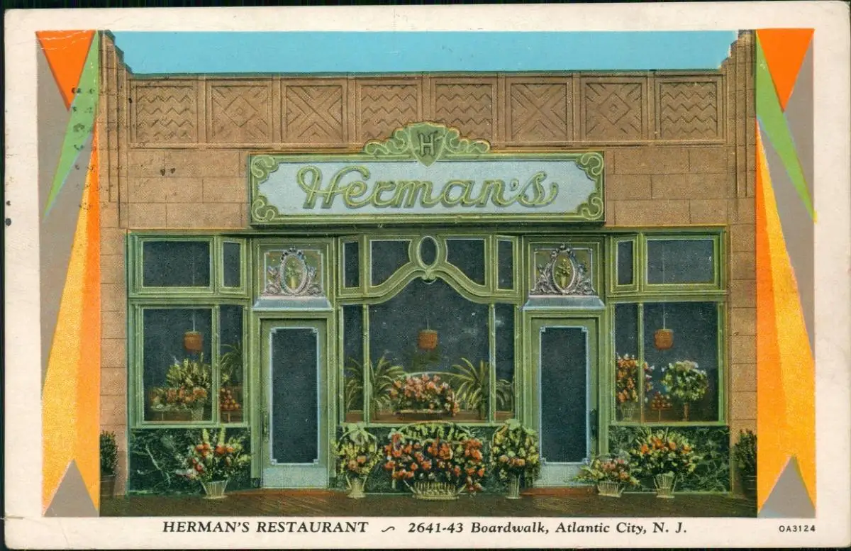 Postcard Atlantic City HERMAN'S RESTAURANT 1932