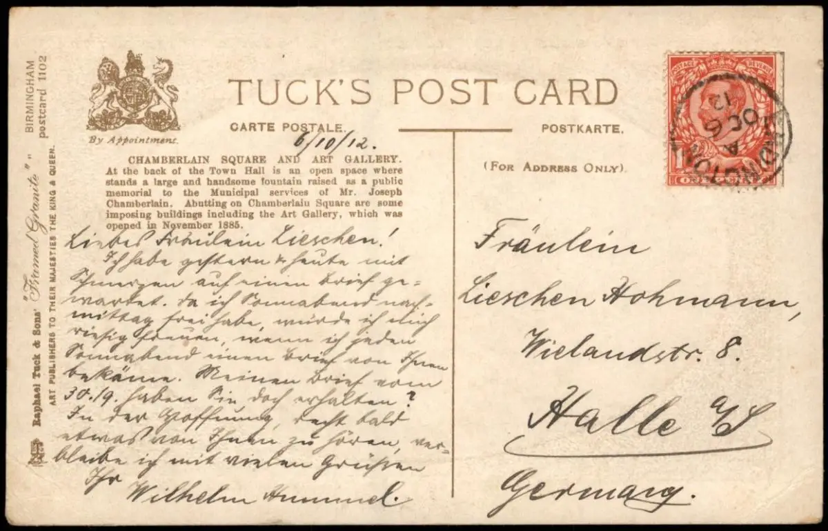 Postcard Birmingham Chamberlain Square 1912 Passepartout