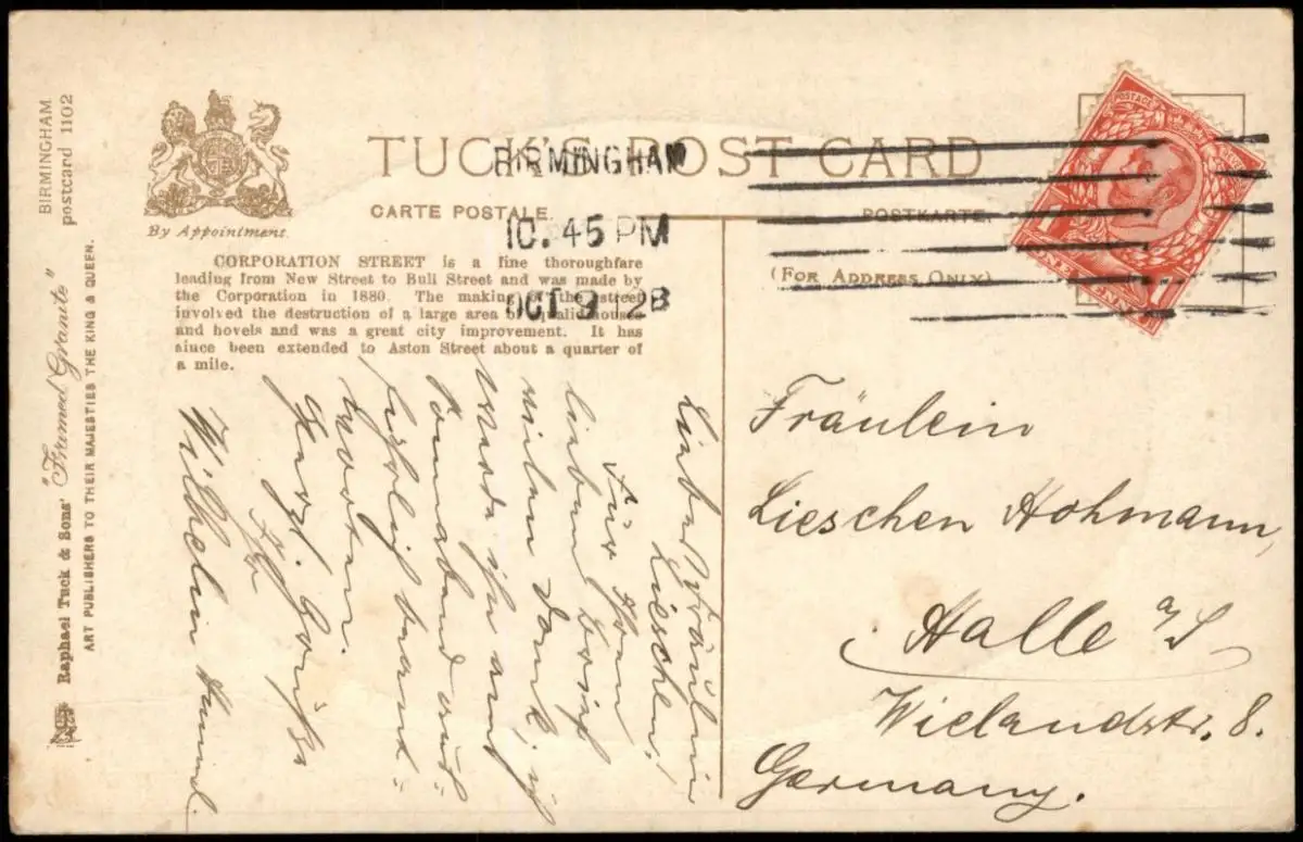 Postcard Birmingham Corporation Street. 1912 Passepartout
