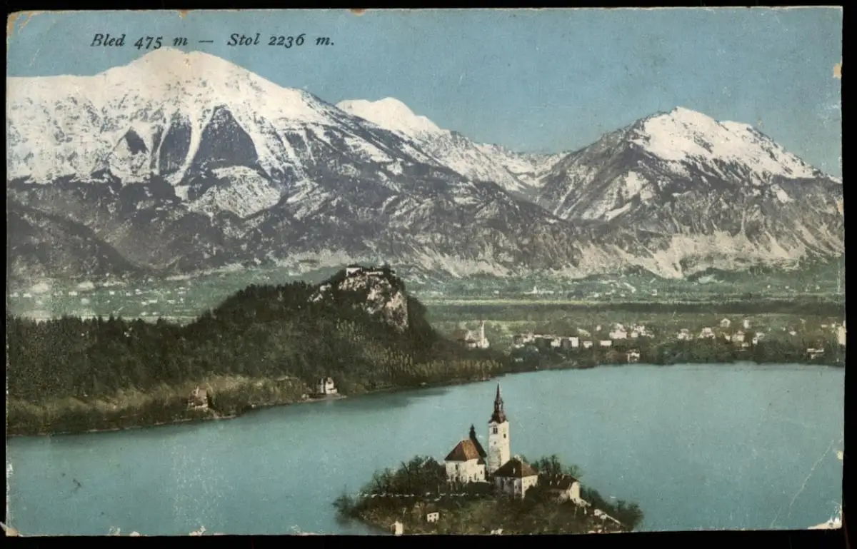 Postcard Bled Veldes Panorama-Ansicht mit Berg Stol 1913