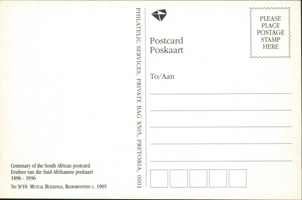 Postcard Bloemfontein Mutual Buildings 1912/1996