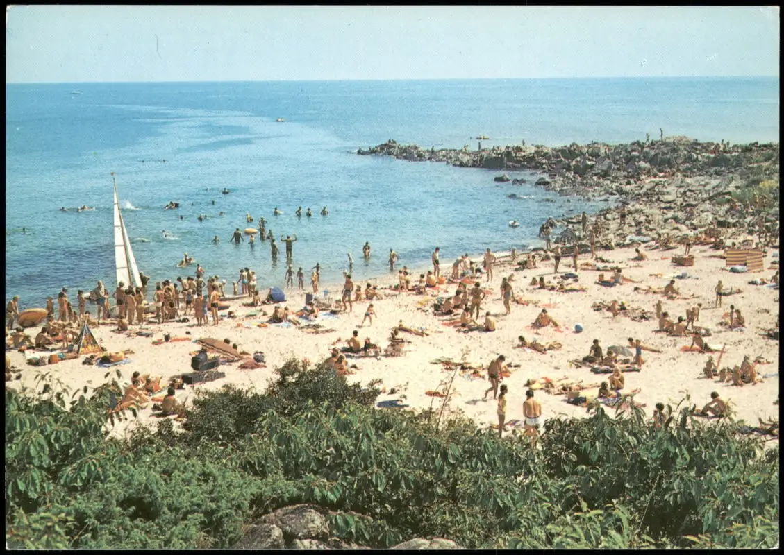 Postcard Bornholm Sandkaas Badestrand Umlandansicht 1980
