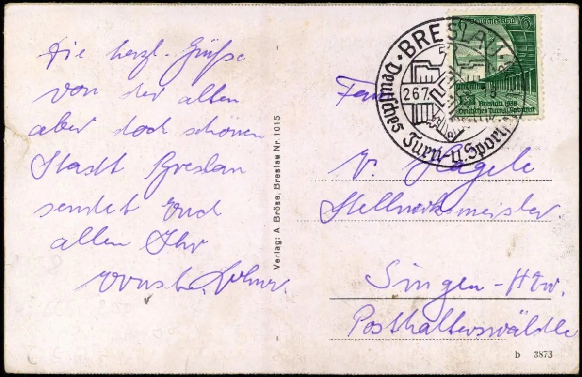 Postcard Breslau Wrocław Hermann-Göring-Stadion 1938 Sonderstempel