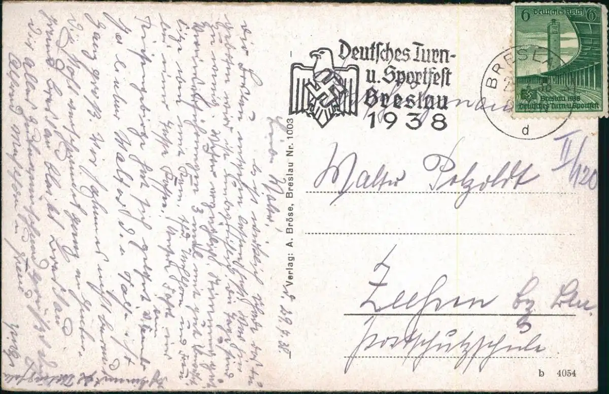 Postcard Breslau Wrocław Liebichshöhe 1938
