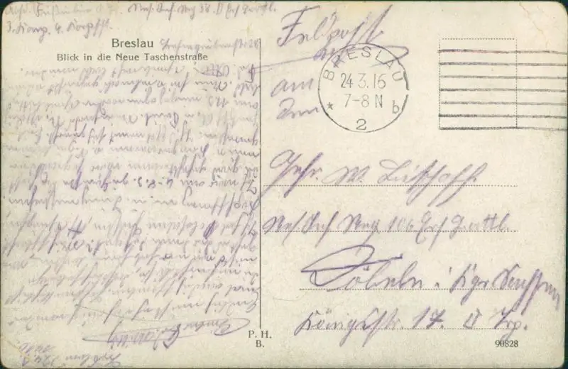 Postcard Breslau Wrocław Taschenstraße - Hotel Kronprinz 1915
