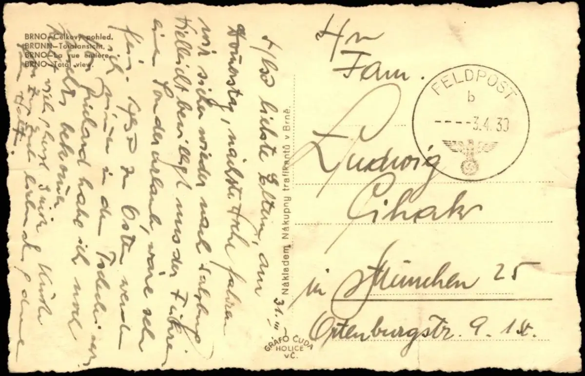 Postcard Brünn Brno Panorama 1939 2. Weltkrieg Feldpost Feldpoststempel