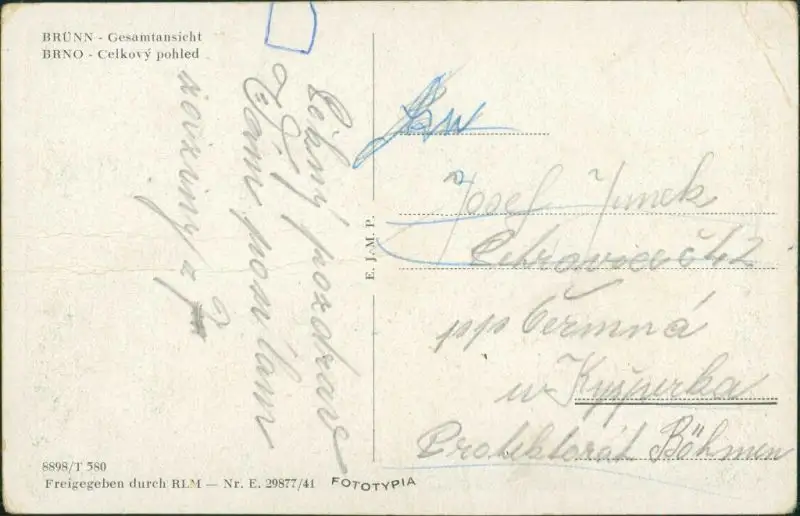 Postcard Brünn Brno Stadt, Fabriken (Briefmarke Vorderseite) 1941