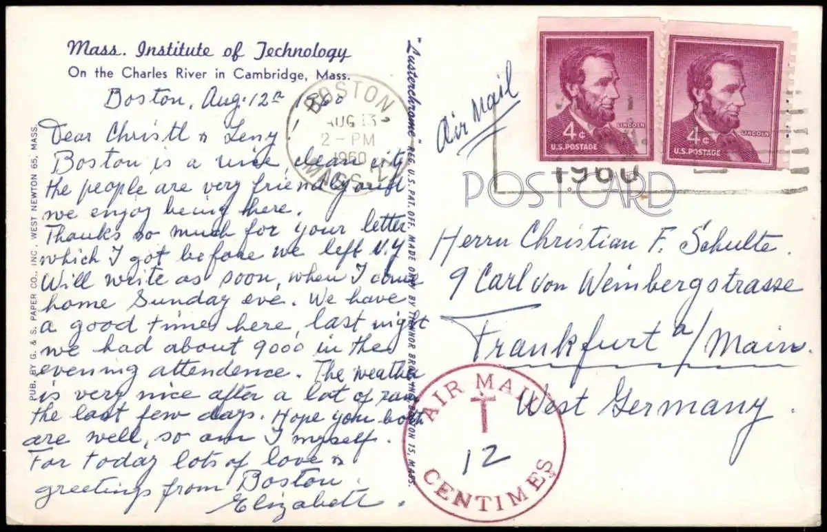 Postcard Cambridge Institute of Technology On the Charles River 1960