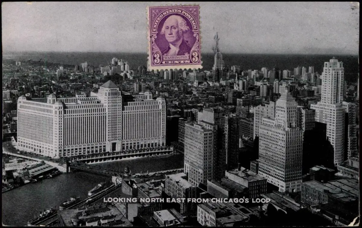 Postcard Chicago Luftaufnahme Luftbild loop 1933