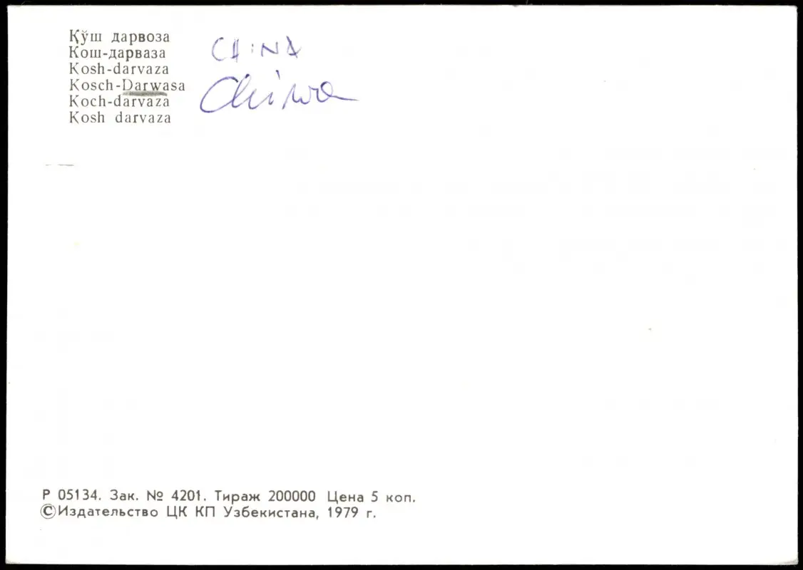 Postcard Chiwa Kosch-Darwasa Кош-дарваза Kosh darvaza 1979