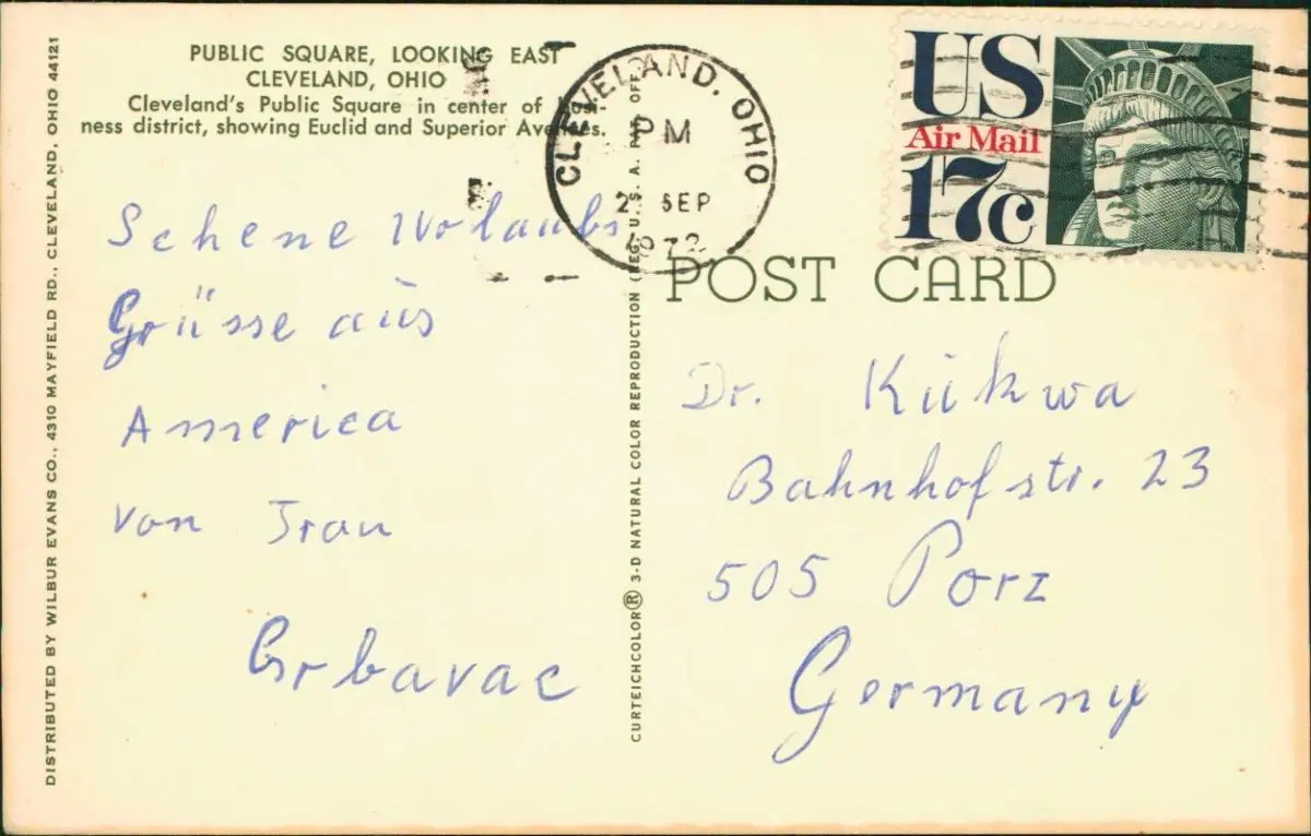 Postcard Cleveland PUBLIC SQUARE, LOOKING EAST, City of Ohio 1972