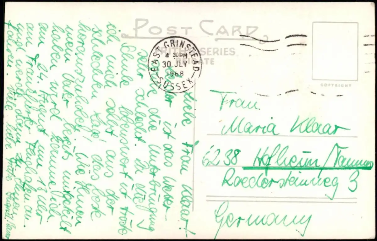 Postcard East Grinstead (Sussex) High Street 1968