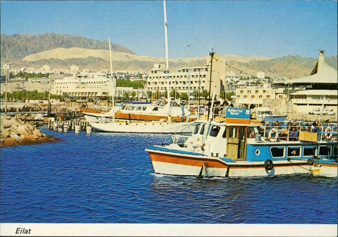 Postcard Eilat אילת Ortsansicht, Boots-Hafen 1980