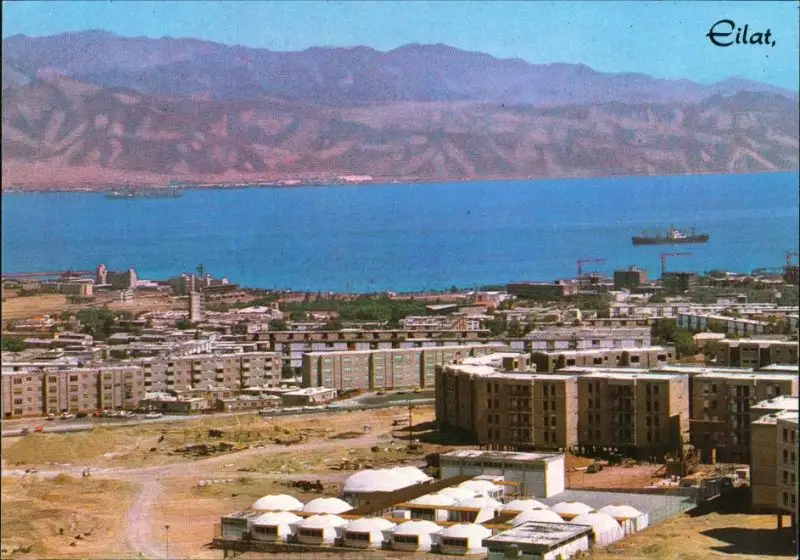 Postcard Eilat אילת Panorama Ansicht, Wohnblocks, Meer-Blick 1970