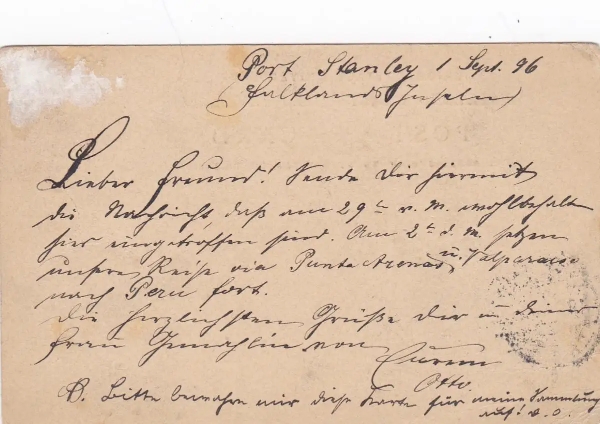 Postcard Falkland Islands/Port Stanley to Germany 1896
