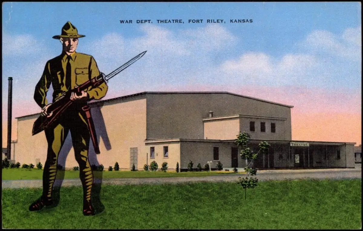 Postcard Fort Riley Kansas WAR DEPT. THEATRE Soldier Soldat 1950