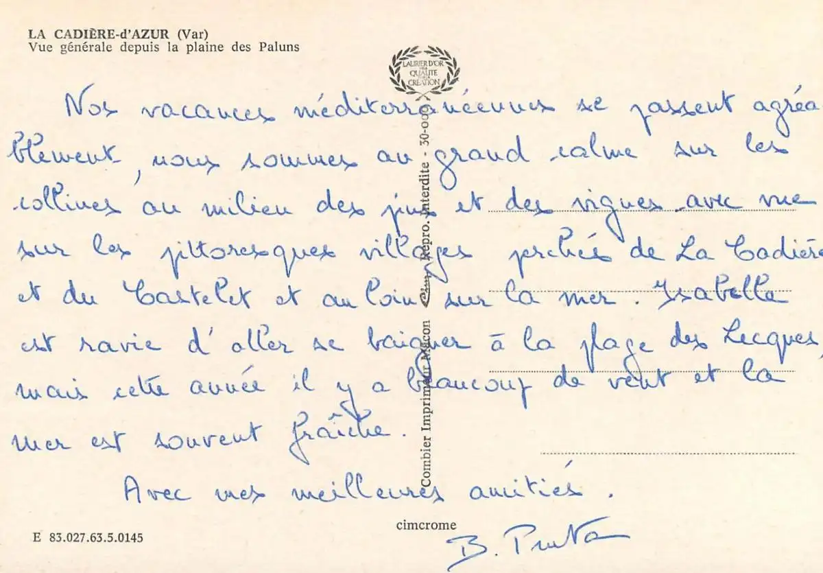 Postcard France Var la Cadiere d'Azur