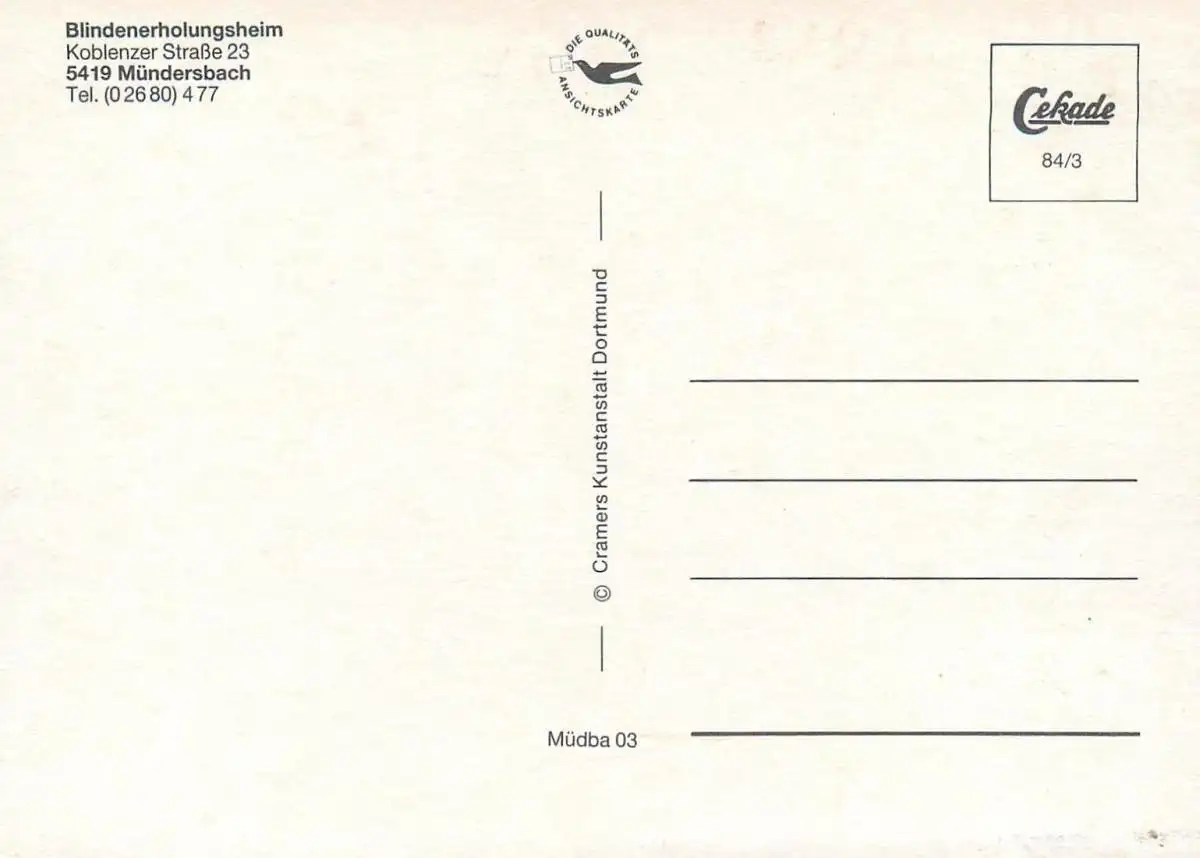 Postcard Germany Blindeuerholungshein Mundersbach im Westerwald