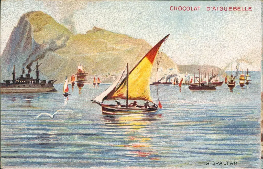Postcard Gibraltar "CHOCOLATERIE D'AIGUEBELLE" Art Panoramic View 1910