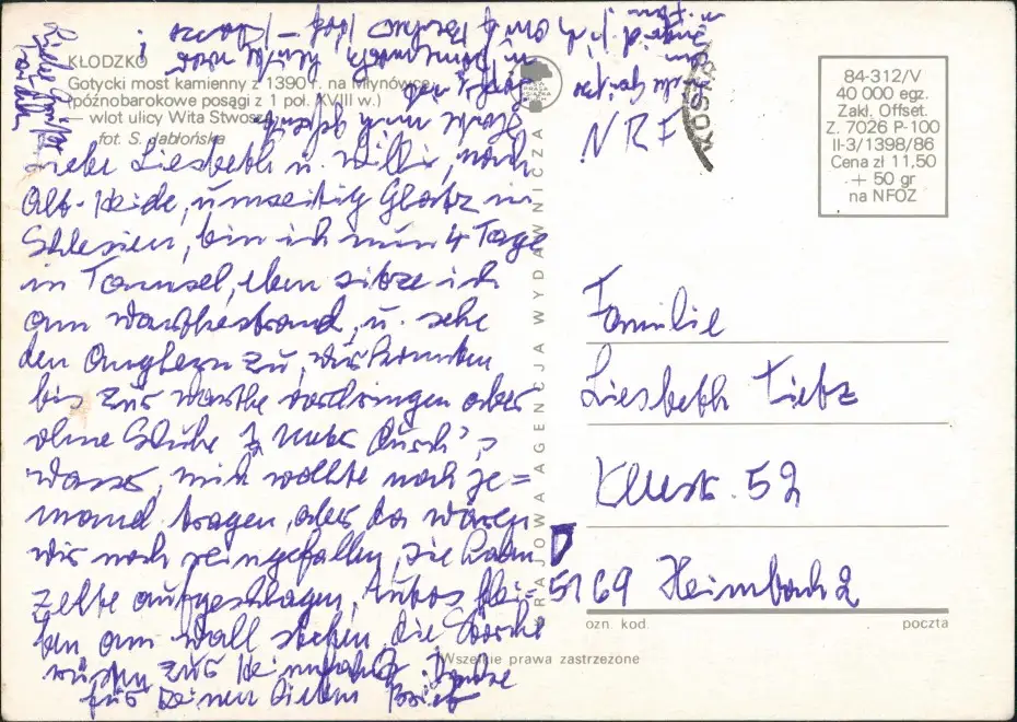 Postcard Glatz Kłodzko wlot ulicy Wita Stwosa 1978