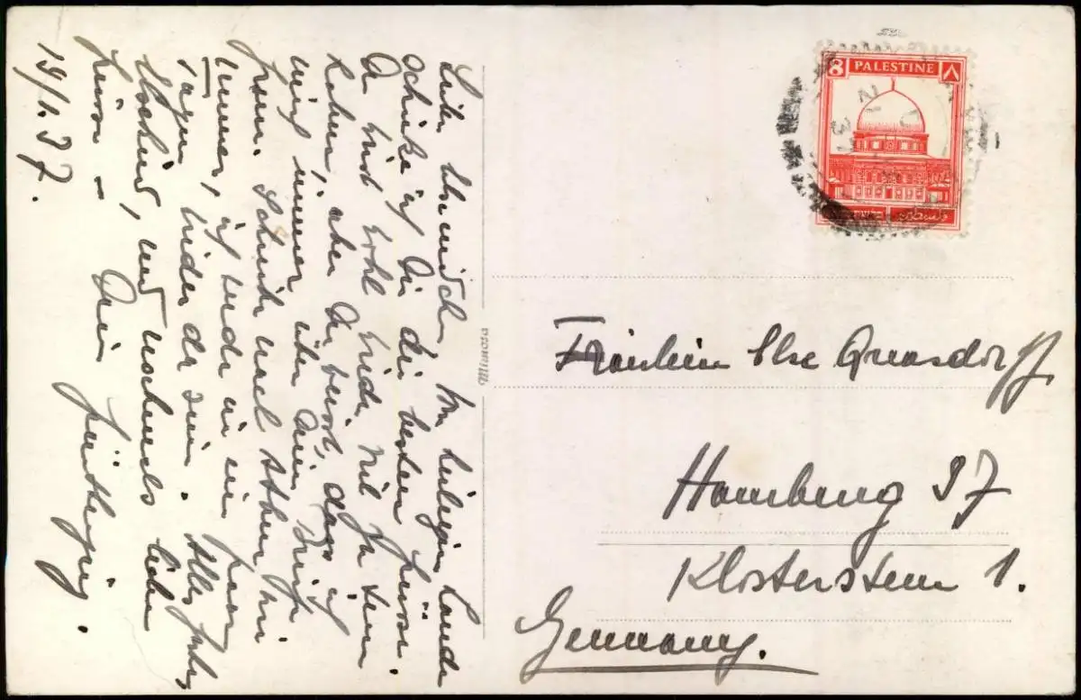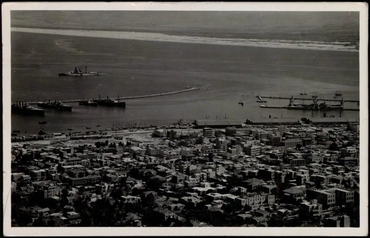 Postcard Haifa Stadt Hafen Israel 1937 gel. Stamp Palestine