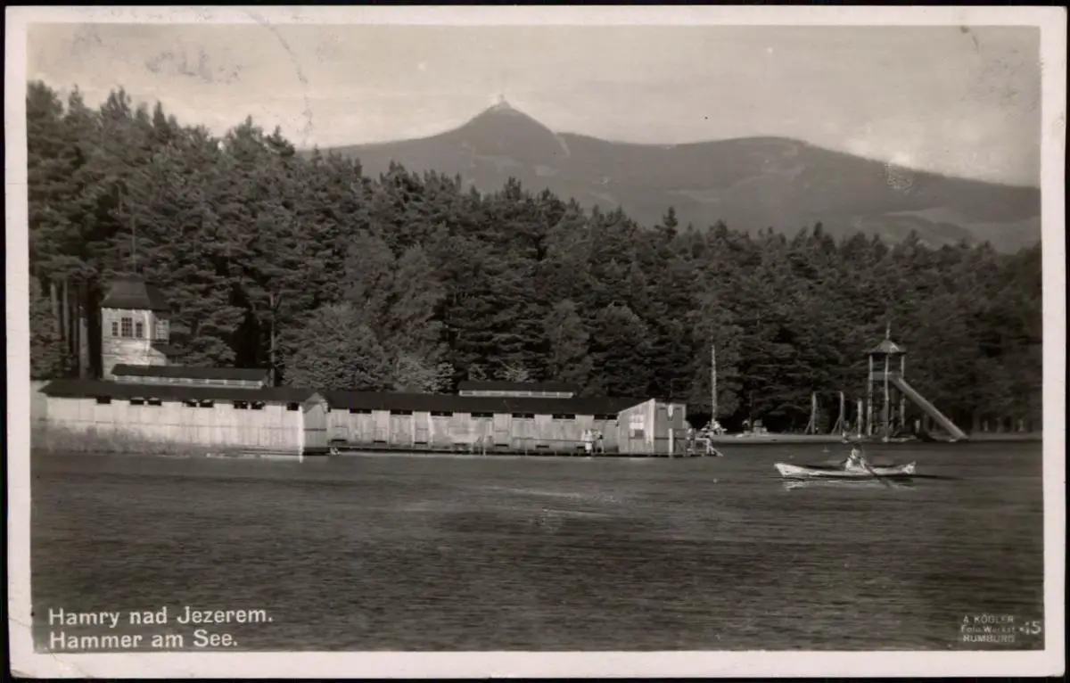 Postcard Hammer am See (Hamr na Jezeře) Badeanstalt - Rutsche 1932