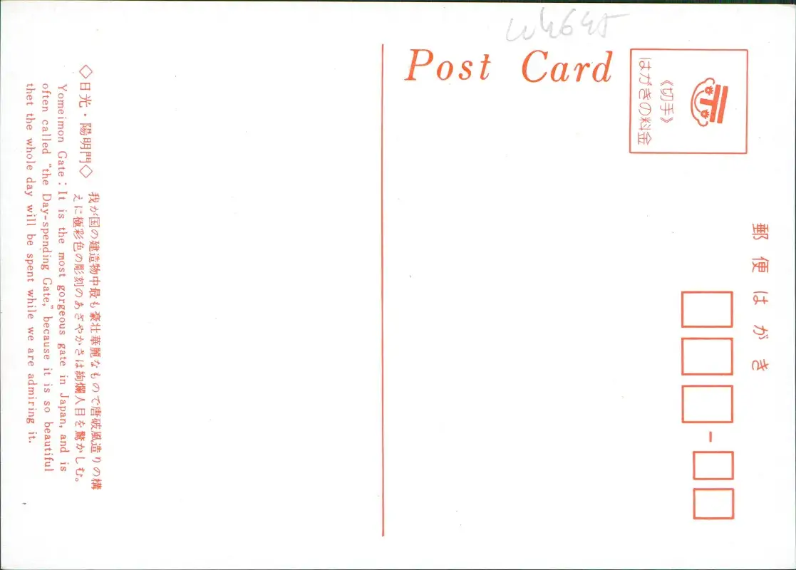 Postcard Japan Yomeimon Gate, Japan Nippon Tempel-Ansicht 1990