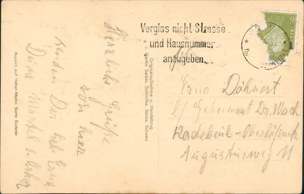 Postcard Jonsdorf (CZ) Janov Wilde Klamm Wehr M. Seidel Schmilka 1932