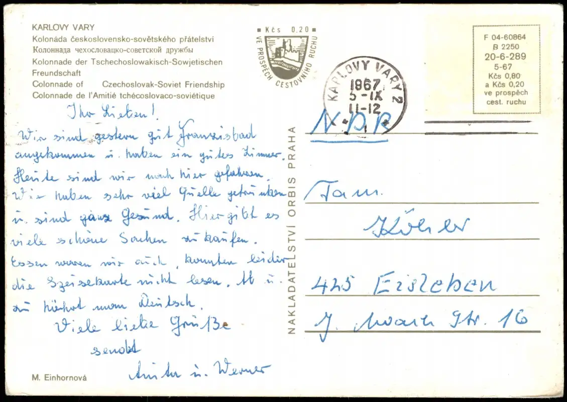 Postcard Karlsbad Karlovy Vary Collonade 1967