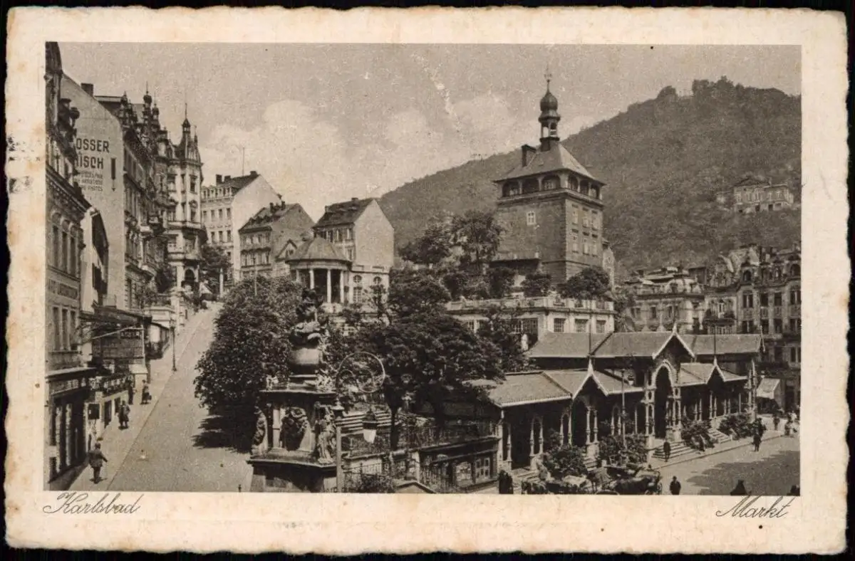 Postcard Karlsbad Karlovy Vary Marktplatz, Straßenkreuzung 1925