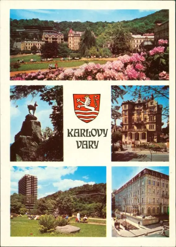Postcard Karlsbad Karlovy Vary Park, Steinbock, Häuser 1975