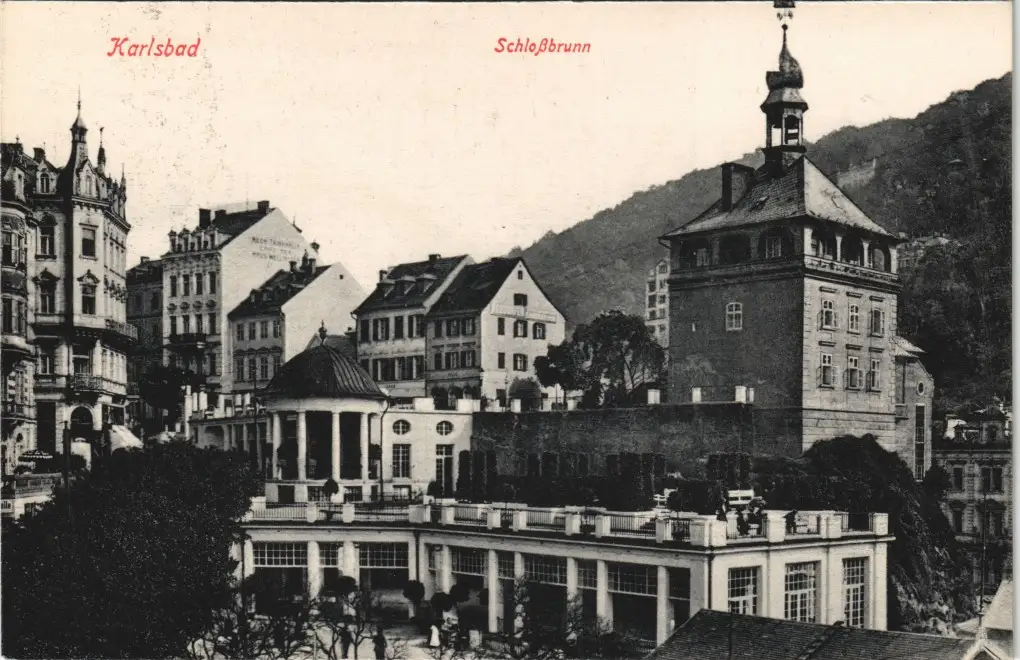 Postcard Karlsbad Karlovy Vary Schlossbrunn 1913
