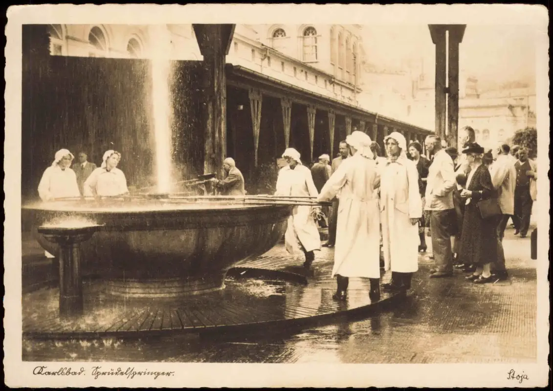 Postcard Karlsbad Karlovy Vary Sprudel Wandelhalle 1930