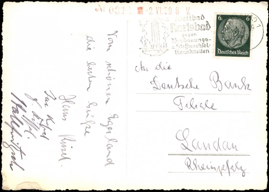 Postcard Karlsbad Karlovy Vary Totale 1939