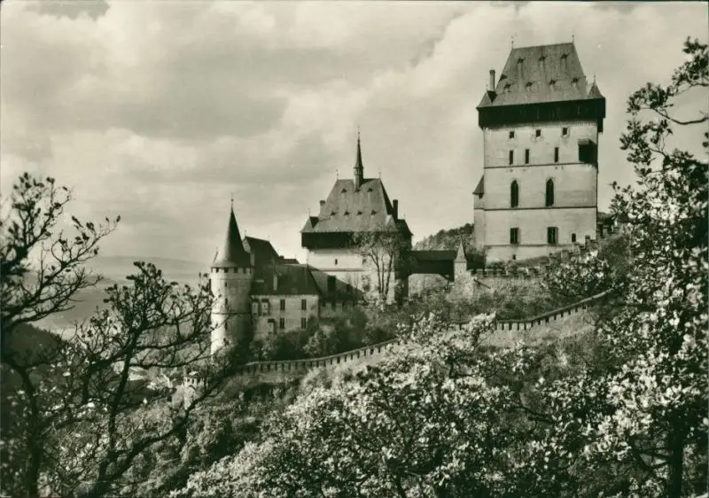 Postcard Karlstein Karlštejn Burg Karlštejn s/w 1980