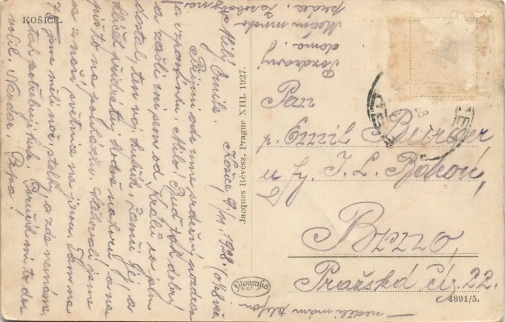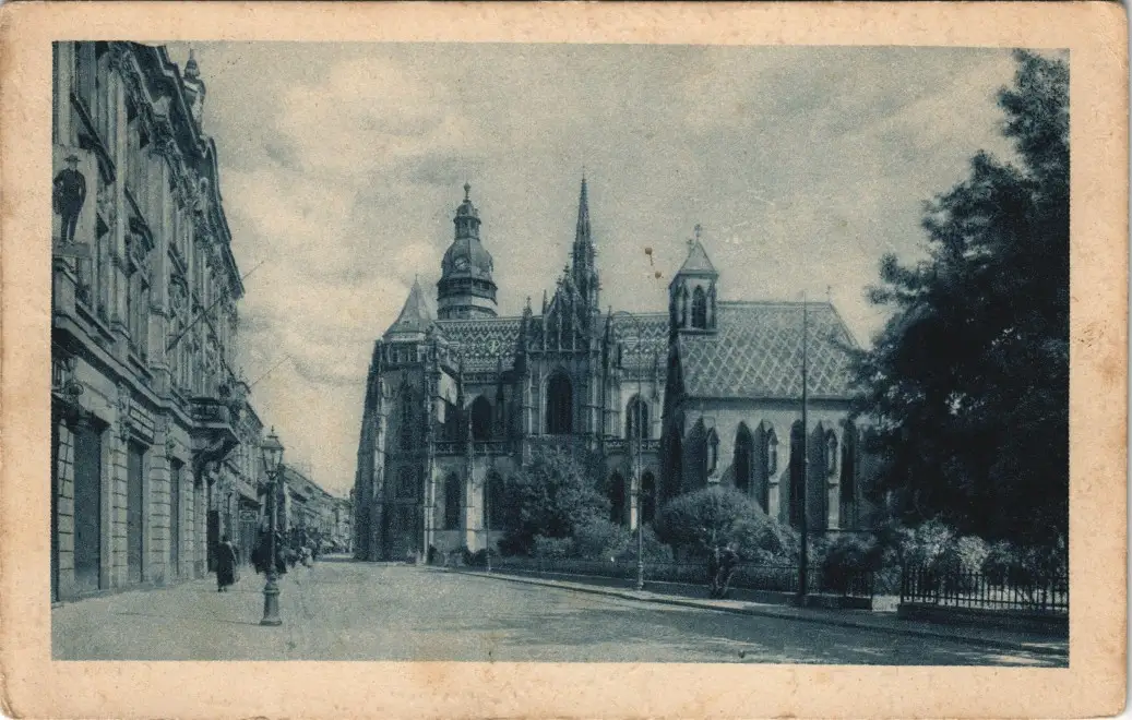 Postcard Kaschau Košice (Kassa) Strassen Partie mit Kirche 1928/1927