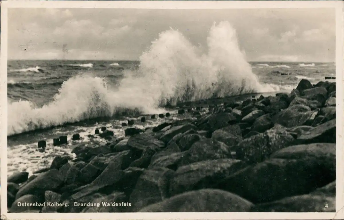 Postcard Kolberg Kołobrzeg Brandung Waldenfels - Pommern 1936