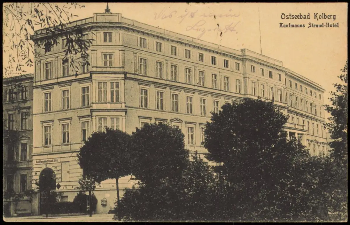 Postcard Kolberg Kołobrzeg Kaufmanns Strand-Hotel 1918 gel. Feldpoststempel