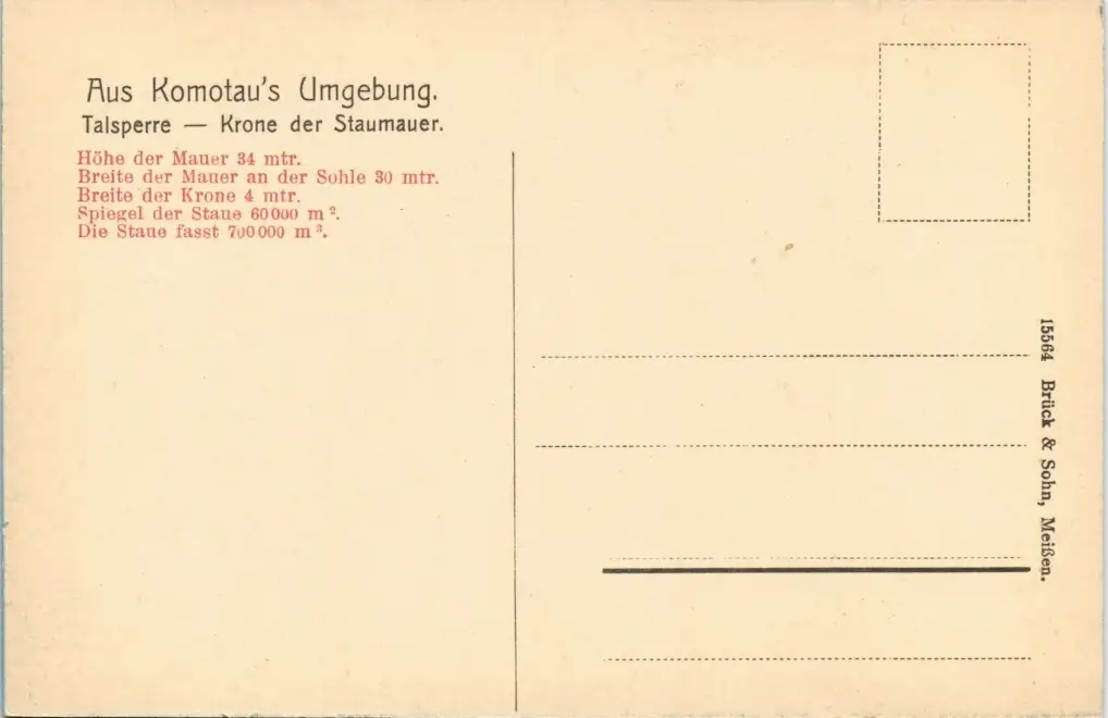 Postcard Komotau Chomutov Talsperre - Blick auf die Staumauer 1913