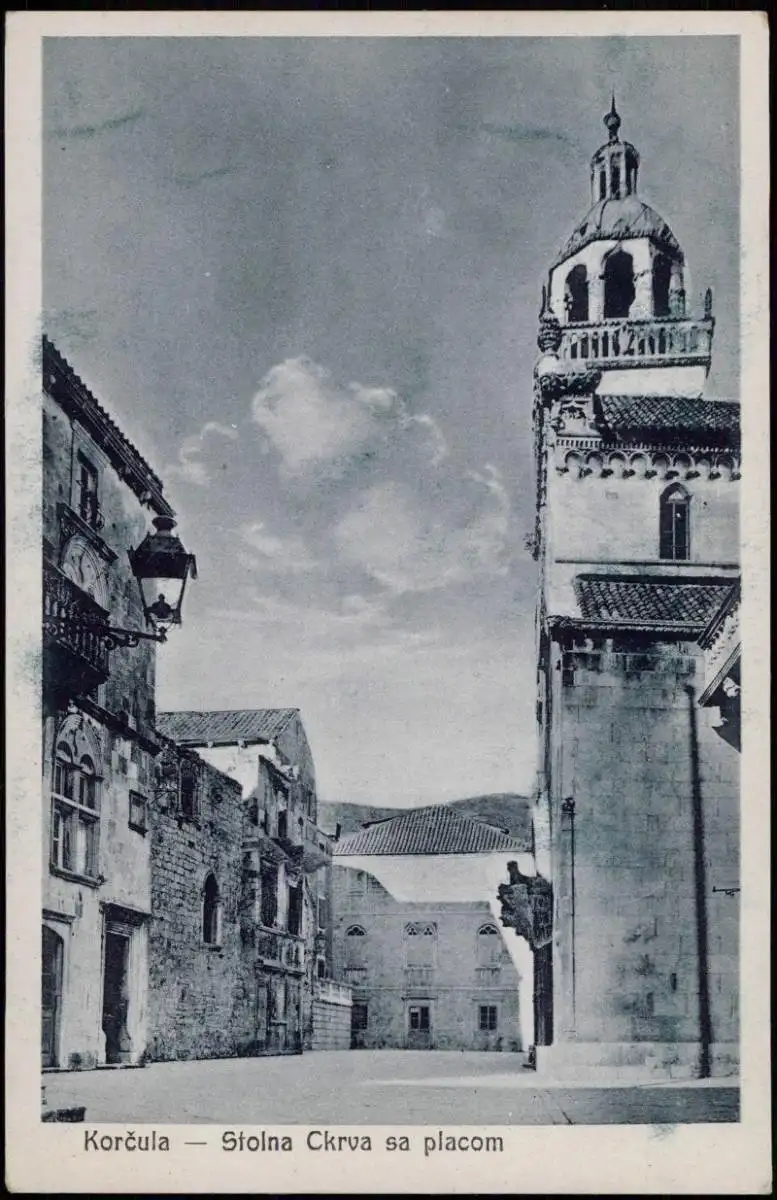 Postcard Korčula Curzola Korkyra Stolna Ckrva sa placom 1929