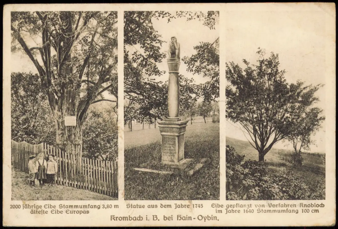 Postcard Krombach Krompach 3 Bild Eibe, Statue Böhmen 1922