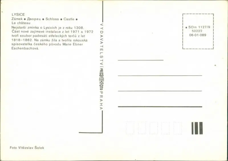 Postcard Lissitz Lysice Zámek/Schloss 1989
