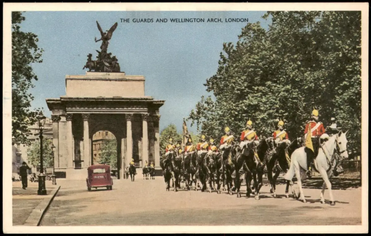 Postcard London THE GUARDS AND WELLINGTON ARCH 1961