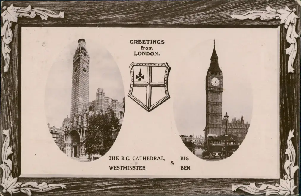 Postcard London THe R.C. Cathedral Westminster & Big Ben 1921