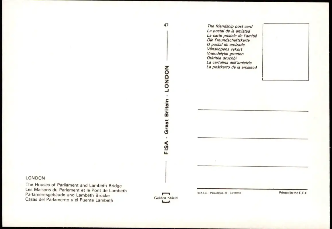 Postcard London The Houses of Parliament and Lambeth Bridge 1980