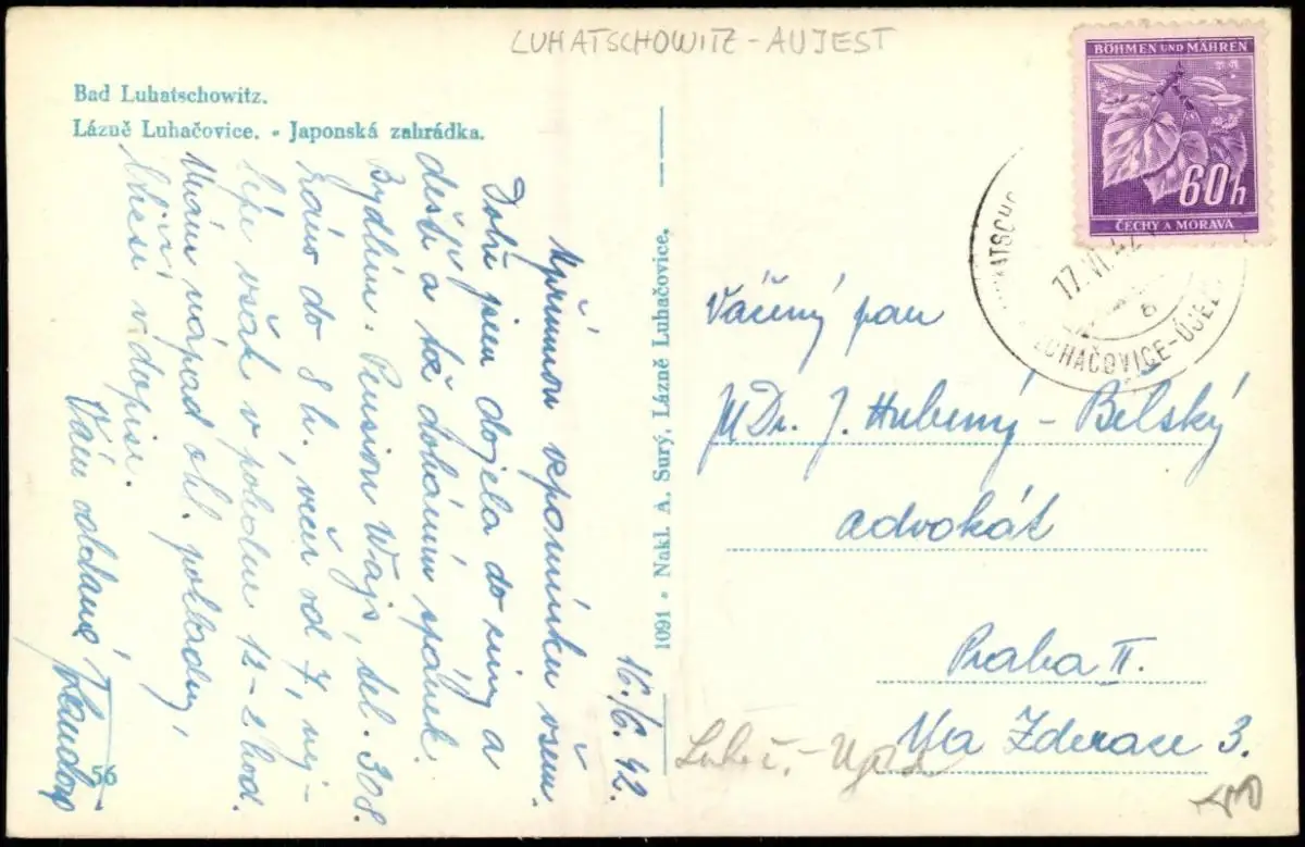 Postcard Luhatschowitz Luhačovice Partie im japanischen Park 1942