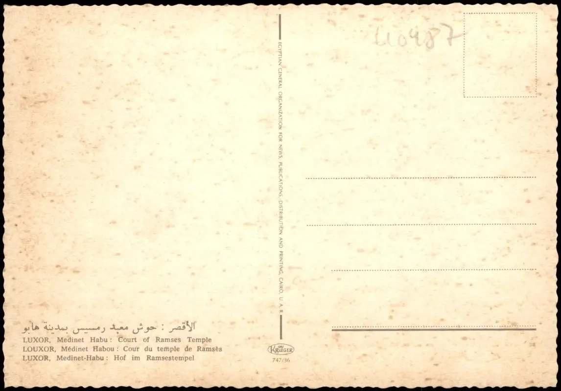 Postcard Luxor LUXOR Medinet Habu Court of Ramses Temple 1970